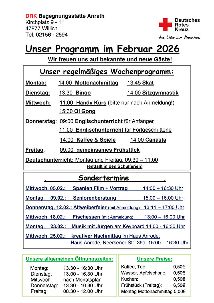 Wir freuen uns über jeden Besucher / jede Besucherin aus allen Willicher Stadtteilen.