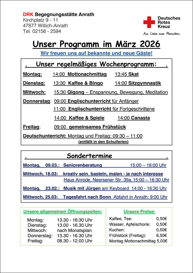 Wir freuen uns über jeden Besucher / jede Besucherin aus allen Willicher Stadtteilen.